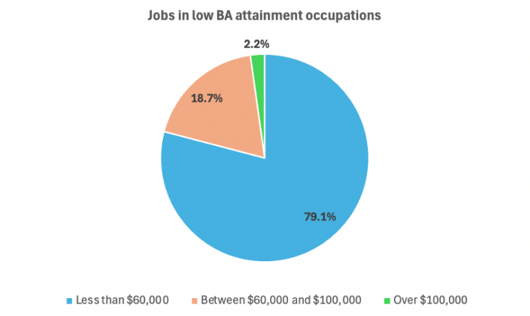 Takeaway #4: Just 2 out of every 10 jobs in low BA-attainment occupations pay at least $60,000 or more. And just 2 out of every 100 jobs in low BA-attainment occupations pay $100,000 or more.